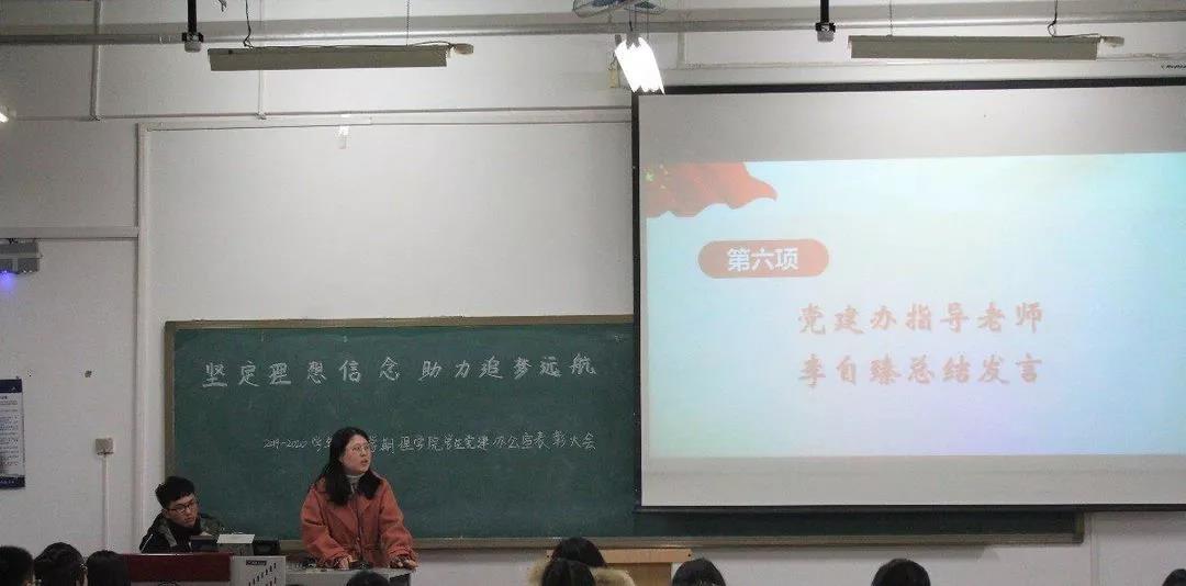 首先党建办公室主任徐妍,党建办副主任陈婕、孔子森,企划部部长雷云、李雅婷,综合部部长严旭阳、徐泮琪,事务部部长张云慧、王天成,信息部部长王鑫、樊嘉颖依次进行述职,他们对本学期的工作进行全面总结,并提出了下学期的工作计划。优秀党员代表齐一乔,优秀干事代表贺瑶瑶、孙彤分享了工作体会和感悟。