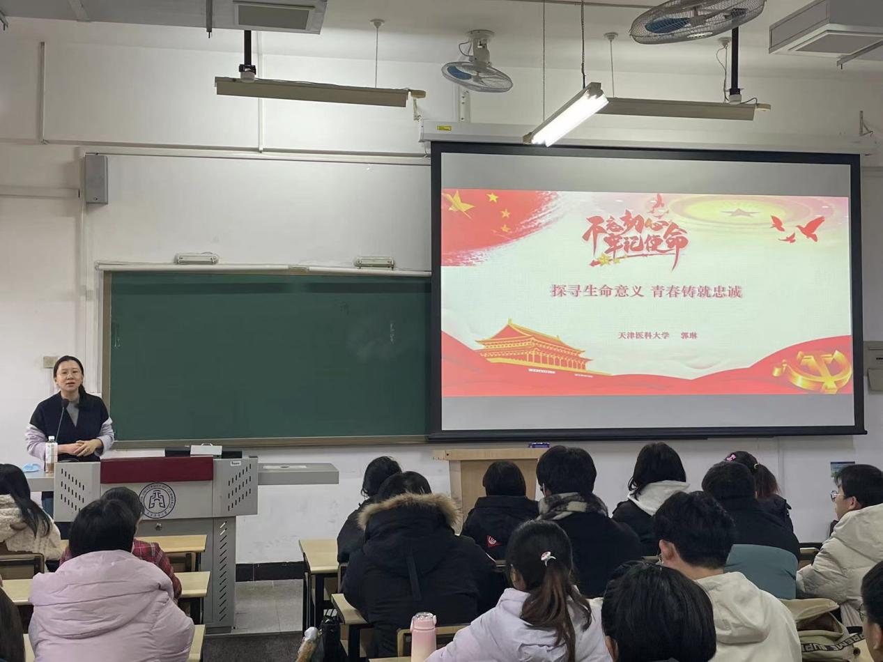 郭琳老师结合自己医科公司的工作经历,提出了将生命意义教育与老员工思想政治教育相结合的理论。她以“中国共产党的初心和使命”为切入点,通过革命先辈与身边优秀党员的故事,引导同学们深入思考生命的内涵和意义,激励同学们将小我融入大我,用青春践行使命与担当,用行动探寻生命的价值。