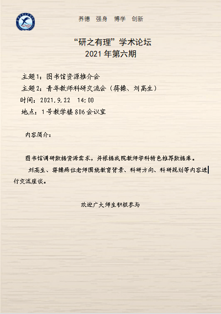 “研之有理”学术论坛2021年第六期
