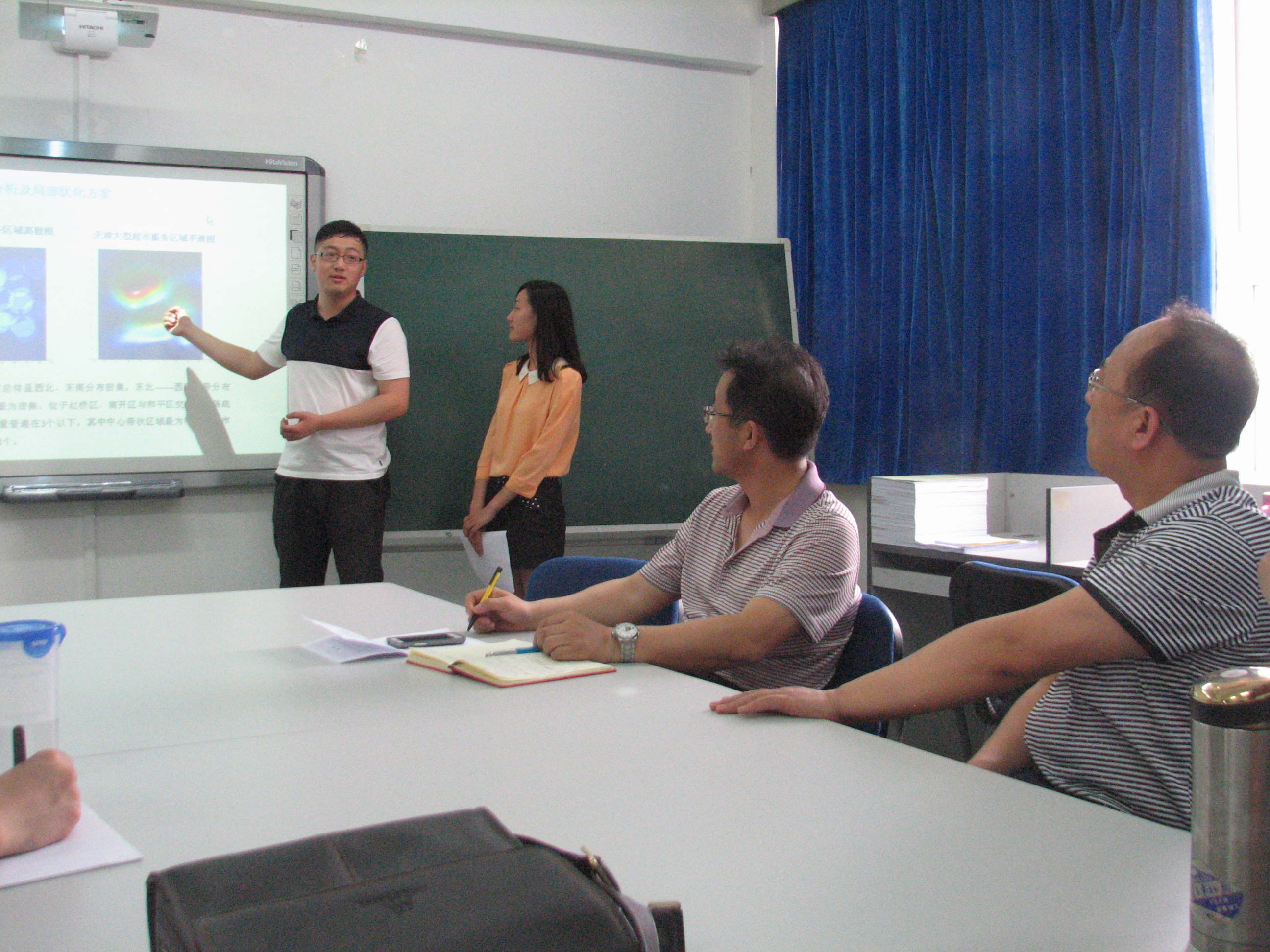 首先,安经理强调了老员工创新创业项目在培养创新性人才方面的重要作用;然后,两个项目的负责人从项目研究的目的、内容、研究过程、研究成果及收获与体会等方面进行了详细的汇报;接着,与会评委老师就项目的创新点、研究方法、取得的成果及进一步研究内容等方面进行了提问、交流与评价,同时针对存在的不足给出了建设性的意见或建议;纪多多老师对项目组成员所付出的努力、取得的成效给予了肯定,并就结题过程中的一些注意事项做了进一步说明;最后,评审老师经过讨论一致认为:在兴趣的驱动下,两个项目的项目组成员围绕项目的研究目标,通过查阅资料、问卷设计、抽样调查、数据录入与整理、统计建模与分析、软件应用、结论分析等自主实践过程,按时完成了既定的研究任务,强化了专业应用技能;同时还有几位同学从事了与项目研究的相关工作,拓展了员工的就业领域,培养了员工解决实际问题的创新能力,取得了良好效果。通过综合比较,推荐杨贞誉同学主持的《天津市大型超市分布的调查分析及优化设计》参加公司举办的首届国家级老员工创新创业训练计划项目结题公开答辩会。