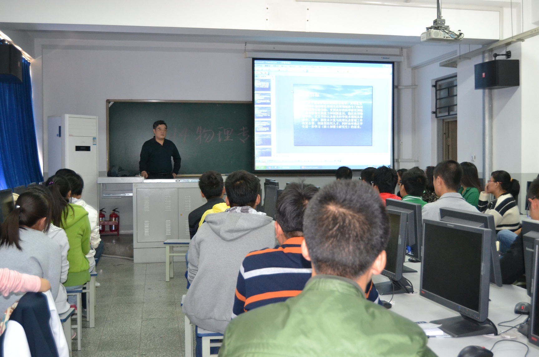物理系刘跃主任首先介绍了应用物理专业的发展和概况,接着又详细讲解了应用物理专业的培养方案,使新生对应用物理专业课程设置与学分分布得到了进一步的了解,刘跃主任还深入浅出的介绍了主要专业课程的教学内容,对课程设置的合理性和必要性做了进一步阐述。刘跃主任渊博的专业知识和幽默诙谐的语言博得了大家的阵阵喝彩。随后,祝威和周严老师分别结合个人的研究方向向大家展示了自己眼中的物理世界,并且就新生关心的物理专业的学习和就业问题做了介绍;张丽芳、马巧云和田雅丽三位老师分别从专业基础课原子物理、电磁学和热学谈起,使大家明白了物理是一门集合了数学,物理,化学,计算机等多门理科知识为一身的综合学科;贡婧宇和刘敏老师则鼓励同学们在学好专业的基础上广泛学习有益的知识,充分利用辅修、选修等机会提高自身综合能力和社会竞争力。员工也就自己关心的话题和老师们展开热烈而充分的交流:从英语四六级到考公务员、考研,从学习方法到班风学风,从专业方向到辅修专业,员工畅所欲言,老师言无不尽,活动的第一个环节在愉快的气氛中接近尾声。