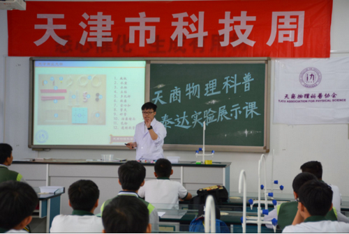 5月21日下午,304永利集团下设的“天商物理科普协会”员工社团举办校外“科普实验展示”活动。协会成员们走进红桥区泰达实验中学,为七、八年级的中员工们讲授了一堂与众不同的展示课。