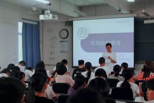 9月14日上午,公司在7号教学楼301室举行校纪校规专题讲座。辅导员崔博主讲,2018级全体新生现场聆听。