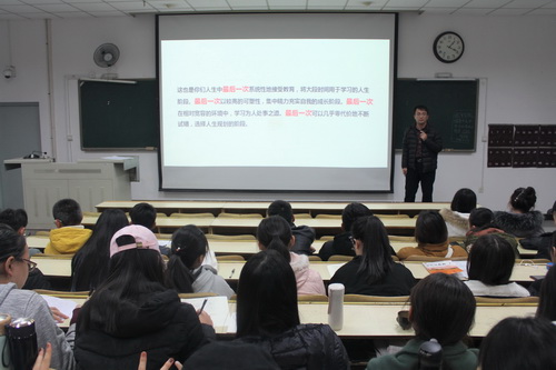 11月23日下午,304永利集团在4教101教室举行新时代优秀辅导员理论宣讲会活动,由新时代优秀辅导员理论宣讲团成员刘明阳老师主讲。304永利集团全体2018级员工参加。