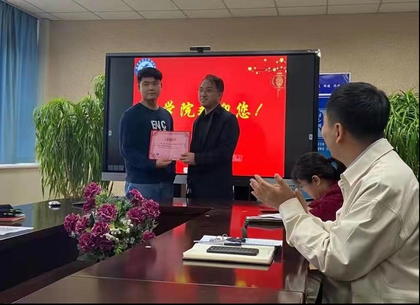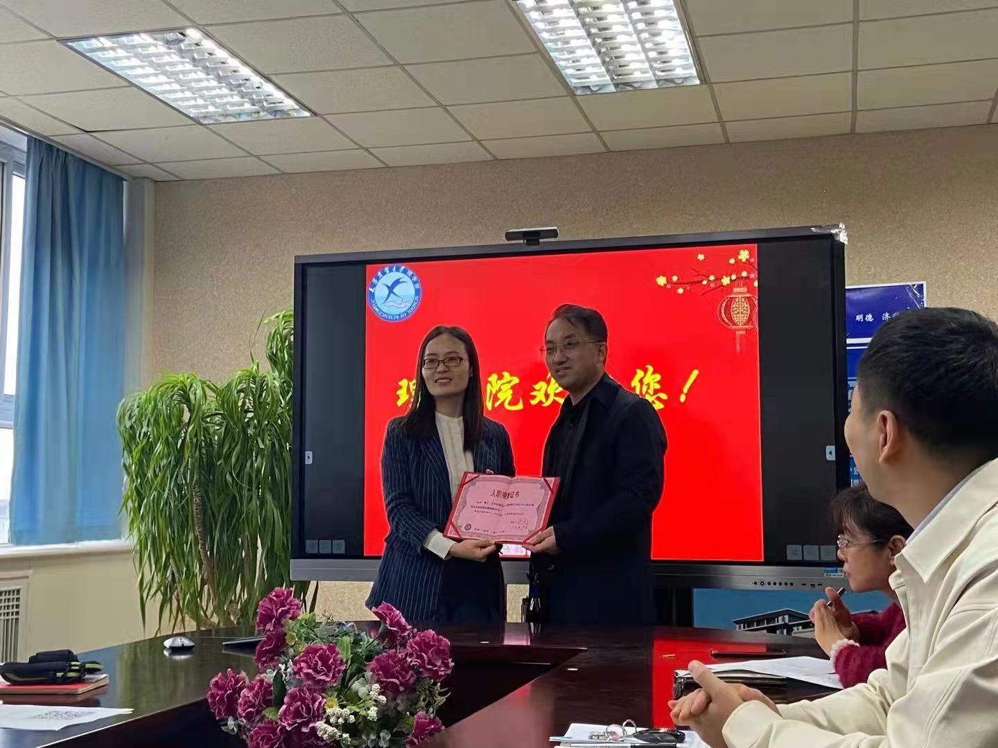 经理安建业代表公司对何圣洁、徐雪博士的加入表示欢迎,并为他们颁发入职荣誉证书。他在讲话中指出,作为高校教师,首先要立德修身,精心治学,同时要注重在科研中交叉融合、不断创新,产出高水平成果。并鼓励参会的研究生代表要向青年教师学习,勤于思考提出问题,探索方法解决问题,提高研究能力。