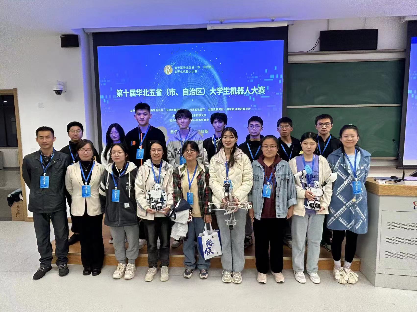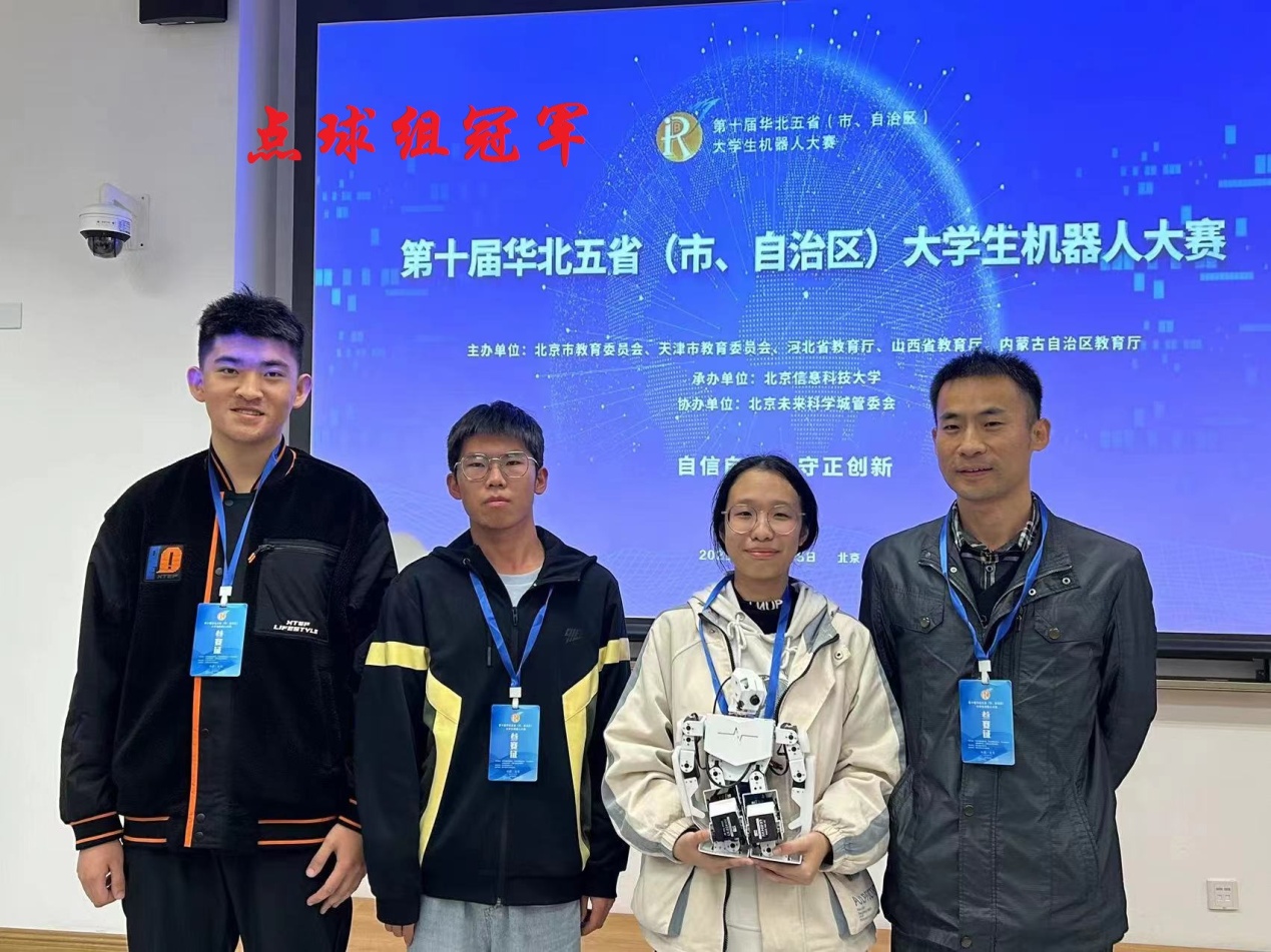 11月3日- 5日,第十届华北五省(市、自治区)老员工机器人大赛在北京信息科技大学沙河校区举行,来自华北五省(市、自治区)共96所高校近500支队伍进行决赛。在教务处的大力支持和兄弟院系的帮助下,公司选派5支代表队分别参加类人机器人竞技体育赛、服务机器人赛、机器人书画赛等3个大类项目决赛。经过激烈角逐,曹彦鹏、黄书彬指导的白惠如等同学获得类人机器人竞技体育赛点球组冠军,曹彦鹏、黄书彬指导的周晨皓等同学获得服务机器人赛总决赛季军;周严、王瑞指导的杨明睿等同学均获得类人机器人竞技体育赛投篮组总决赛二等奖,曹彦鹏、周严指导的周晨皓等同学获得类人机器人竞技体育赛田径组总决赛二等奖;王丹丽、曹彦鹏指导的刘凯峰等同学获机器人书画赛总决赛三等奖。