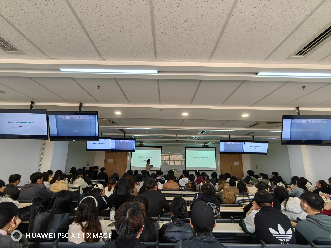新东方大学事业部天津中心校企合作主管胡津瑞进行企业宣讲