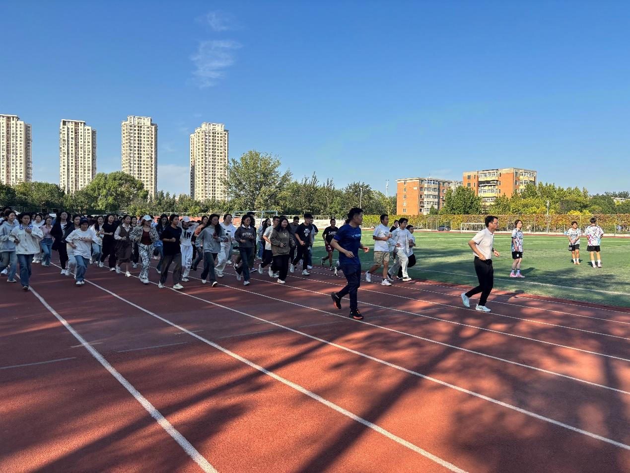 启动仪式后,与会领导老师为同学们领跑,秋日午后风清气爽,200多名理院学子在茵茵草场留下了靓丽风景线。