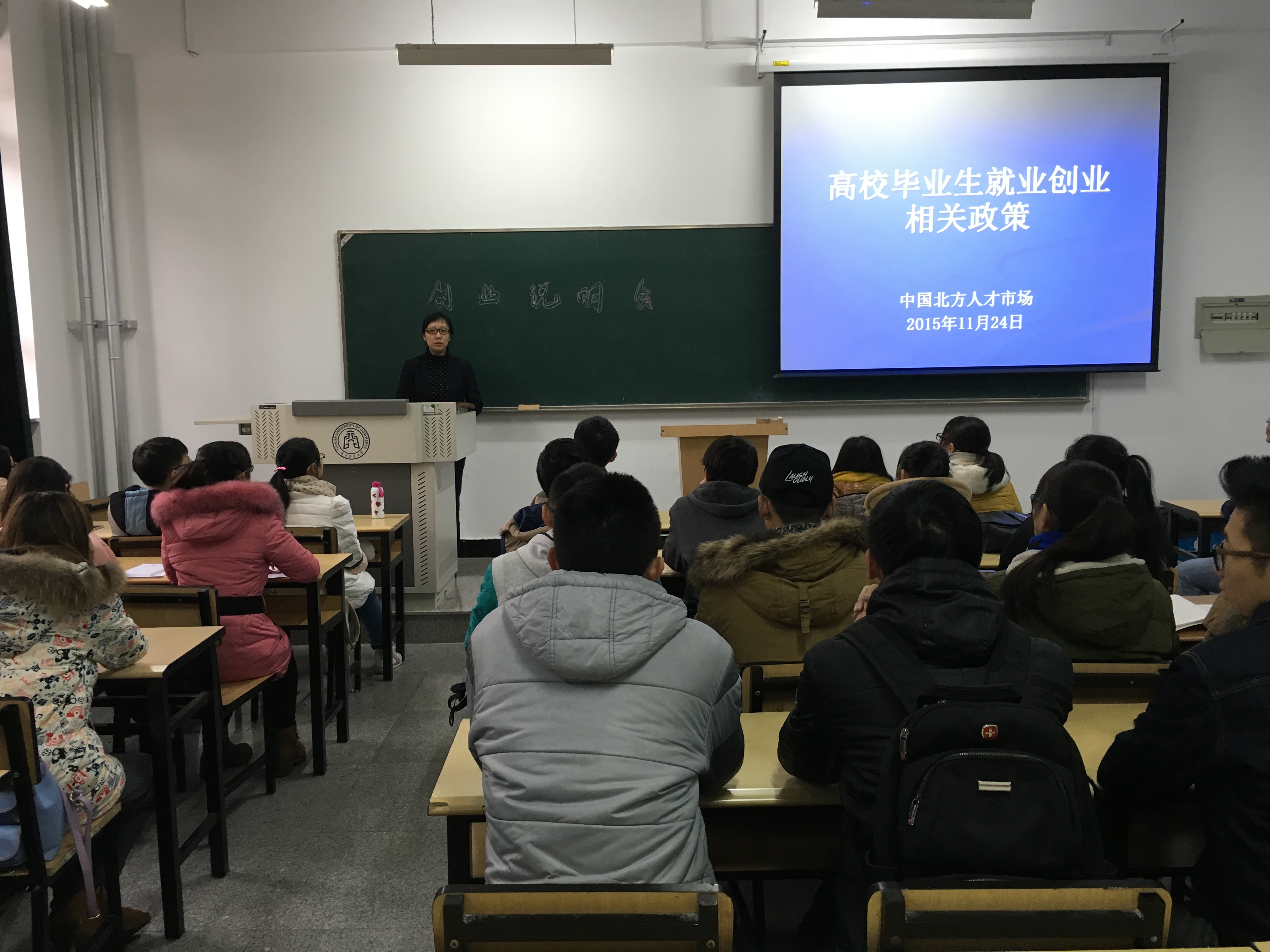 宣讲会结束后,很多同学表示出对创业创新的极大兴趣并继续与两位老师进行了交流。中国北方人才市场还将于12月1日组织公司员工赴创业孵化基地进行参观。