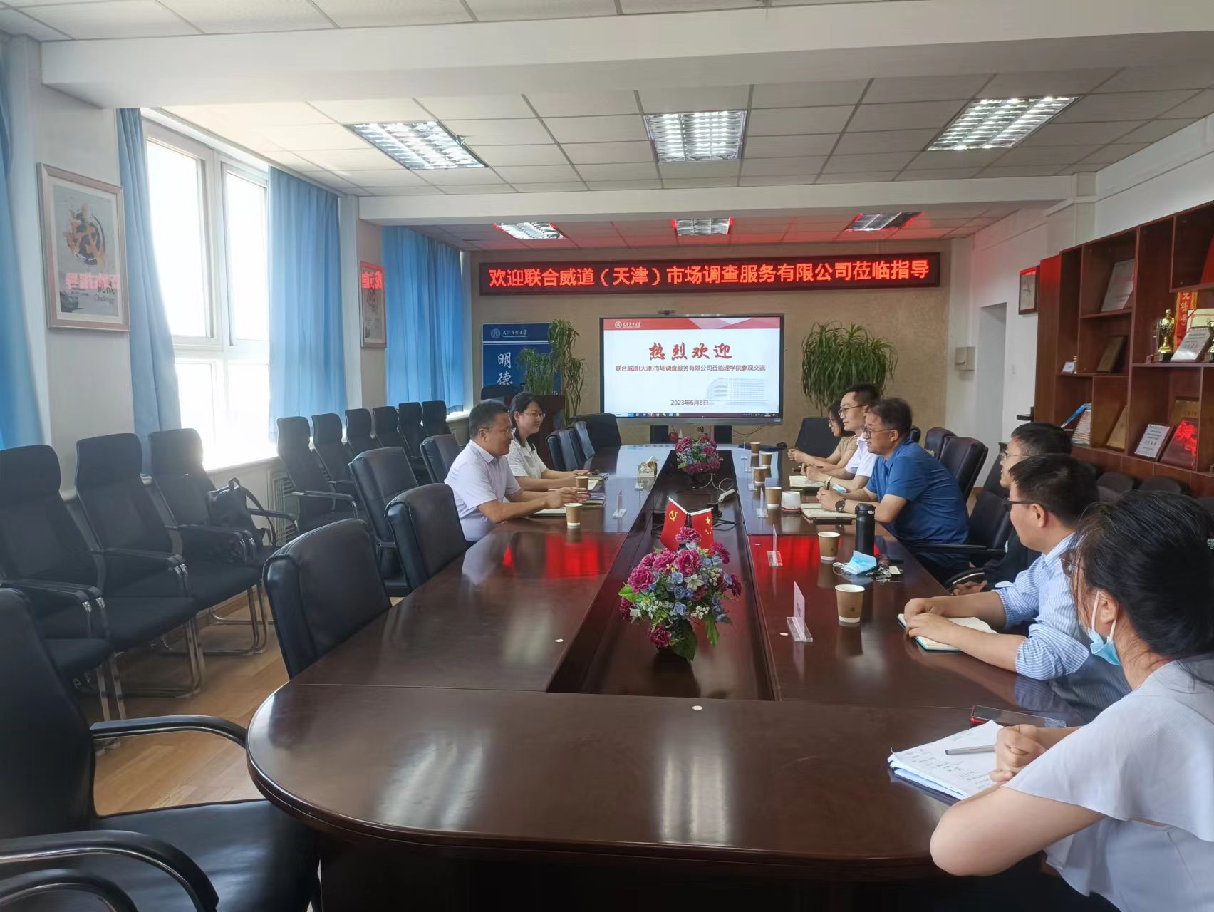 6月8日上午,公司邀请联合威道(天津)市场调查服务有限公司公共事业部总经理刘恒超、总经理助理贾佳悦来公司进行座谈交流。经理安建业、数学系主任李晶洁、统计系副主任杜永强、数据科学系副主任李新服、统计系教师张丽和刘高生、博士辅导员朱玉参加,并与企业进行了深入交流。