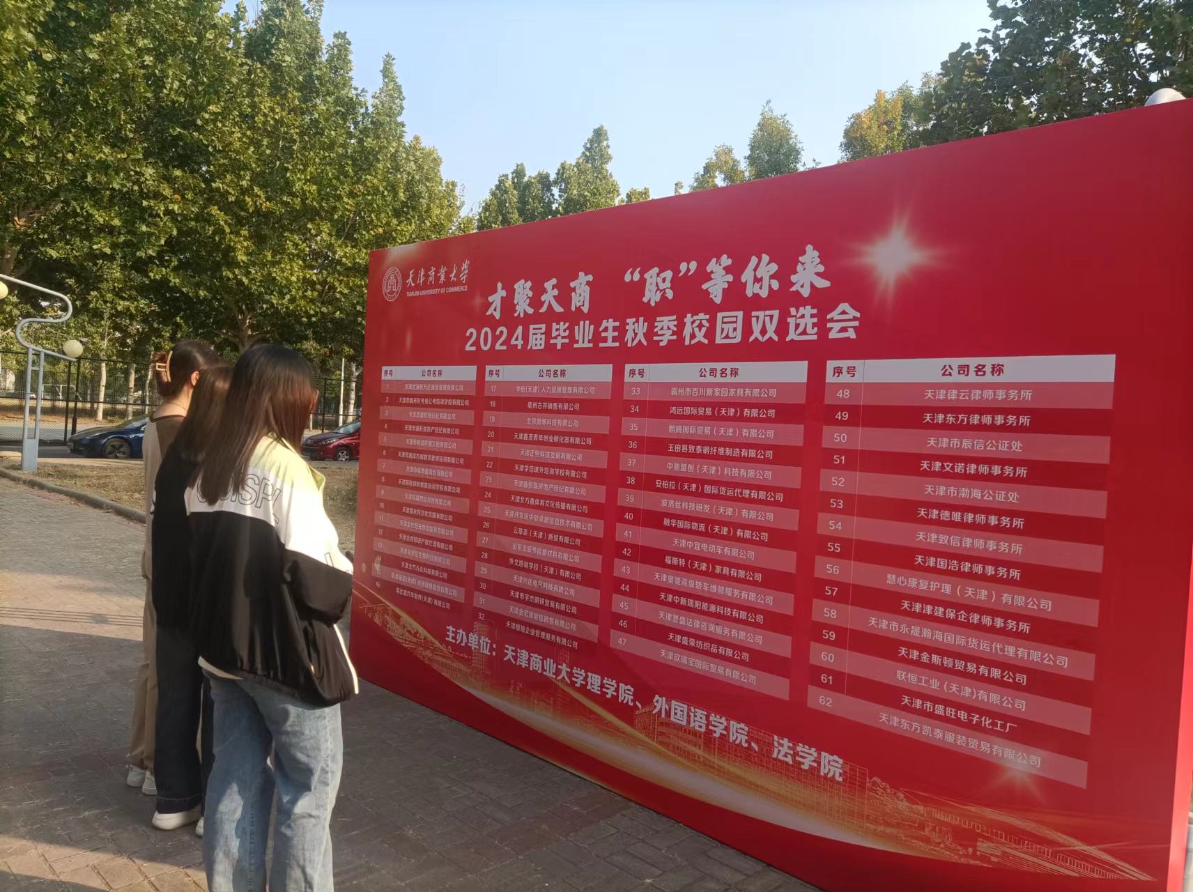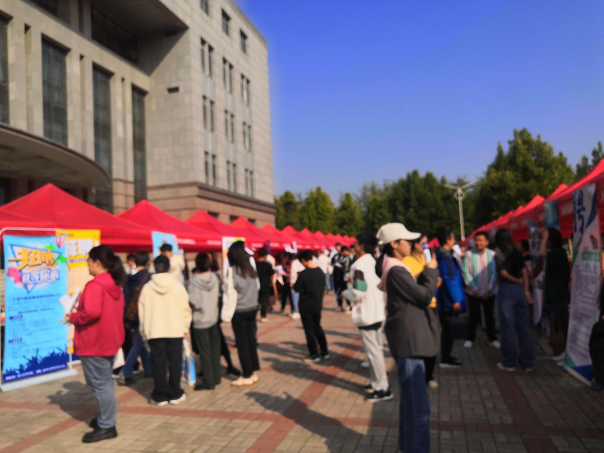 10月11日下午,304永利集团与外国语公司、法公司在图书馆后广场联合举办“才聚天商·‘职’等你来”2024届毕业生秋季校园双选会。