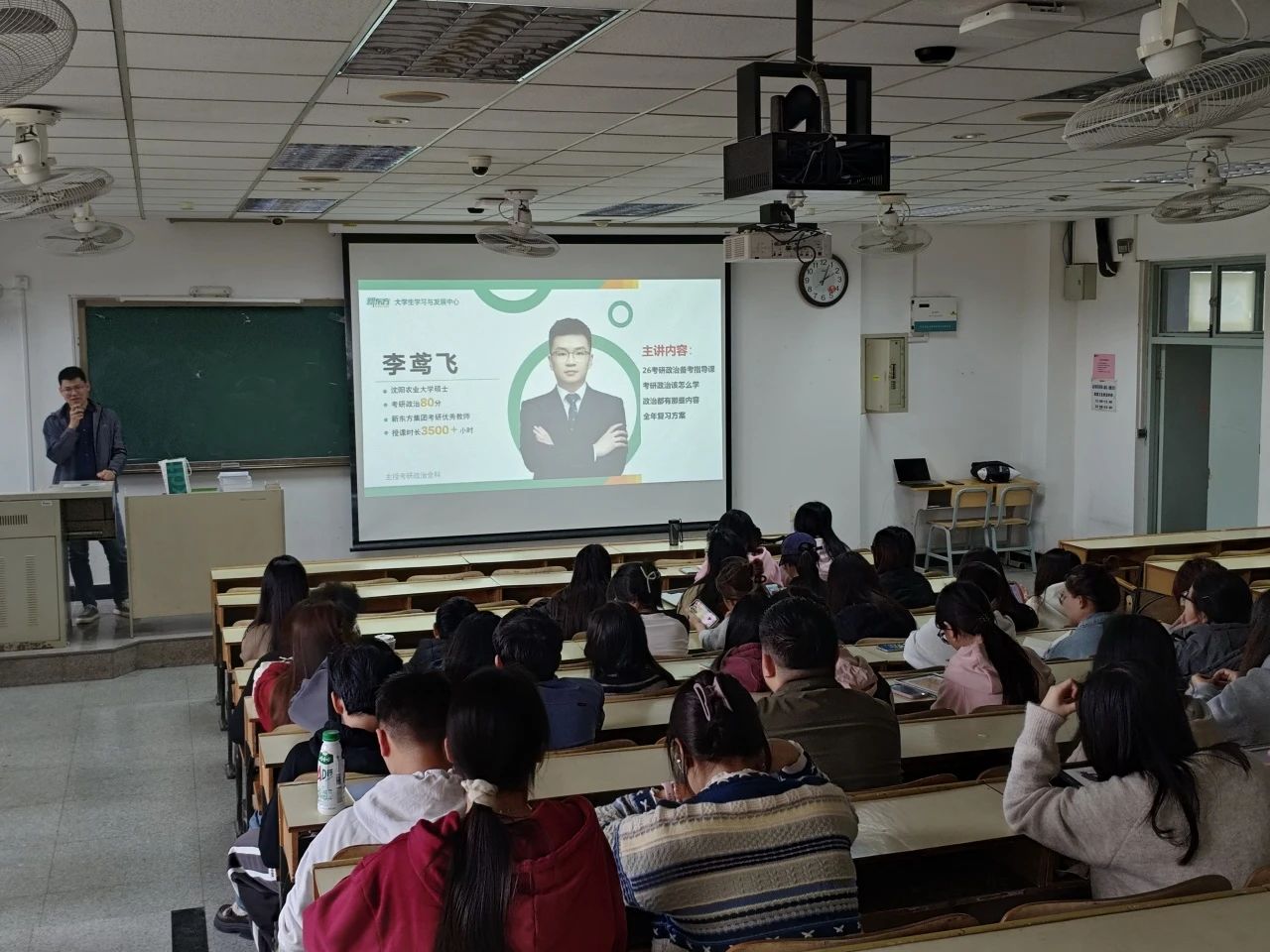 为帮助公司员工更好地备考硕士研究生入学考试,营造浓厚的备考氛围,10月30日下午,公司邀请新东方集团考研优秀教师李鸢飞老师,在4教301教室针对2022级考研员工开展考研政治科目的辅导讲座,2022级意向考研员工50余人参加此次讲座。
