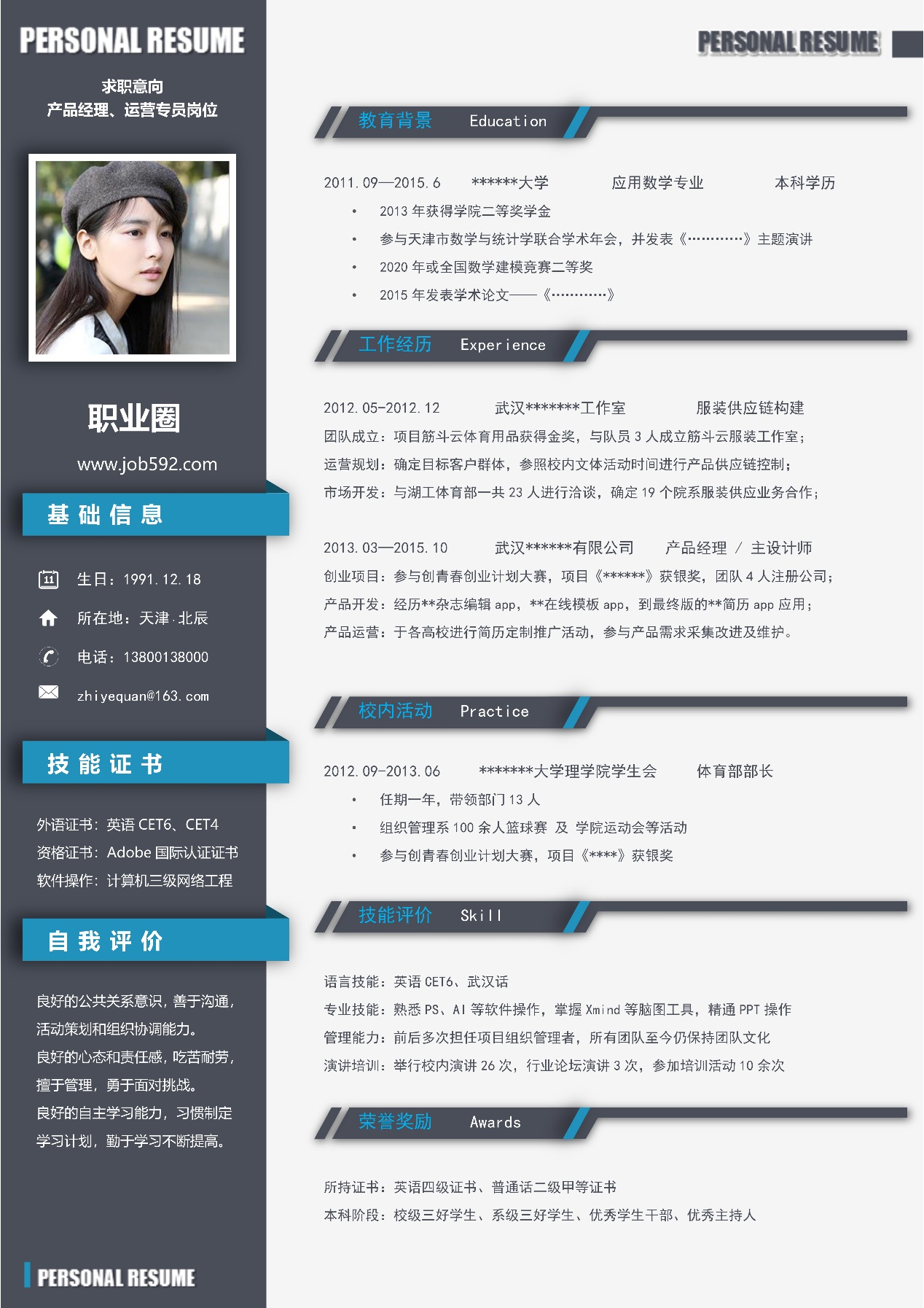 四、简历模板推荐